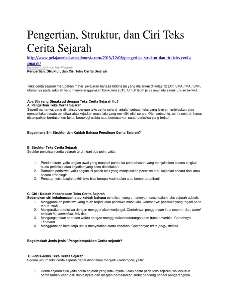 Contoh Soal Tentang Struktur Dan Ciri Kebahasaan Teks Cerita Sejarah : Teks Cerita Sejarah Pengertian Struktur Dan Contoh Portal Ilmu Com / Ciri bahasa teks eksplanasi adalah sebagai berikut.. Oleh karena itu, sangat penting untuk memahami konesep dari ketiga. 18.11.2021 · contoh teks prosedur misalnya prosedur keselamatan kerja, prosedur dalam menggunakan suatu benda, dll. Baca juga artikel terkait tentang materi: Di pihak lain, kita perlu mengomunikasikan pemahaman kita itu dalam berbagai bentuk untuk keperluan … Ciri bahasa teks eksplanasi adalah sebagai berikut.